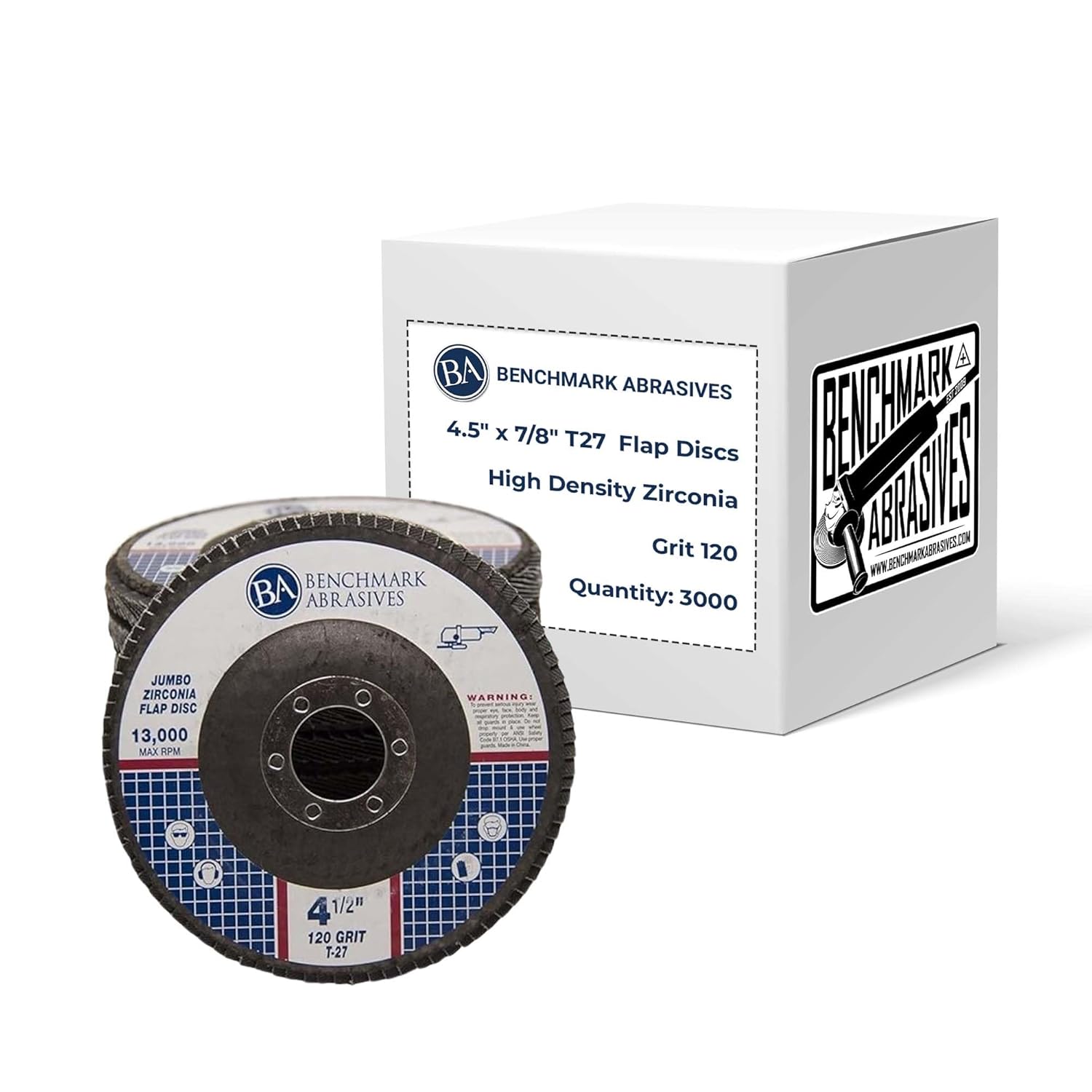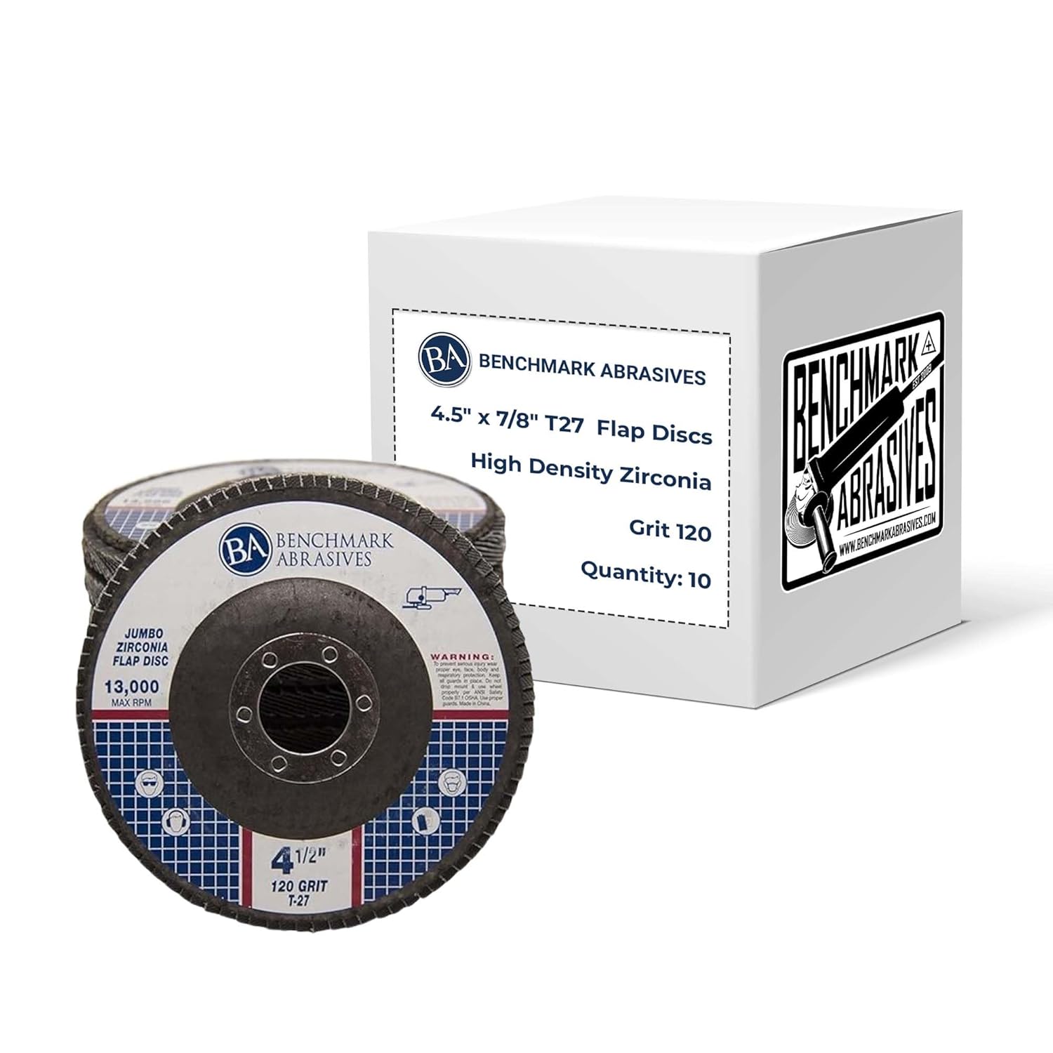 Benchmark Abrasives 4.5″ x 7/8″ Premium High Density Jumbo Zirconia Type 27 Flap Discs 4 1/2 for Angle Grinder, Sanding Discs, Finishing – Grinding Wheels 4 1/2 inch – (10 Pack) – 60
