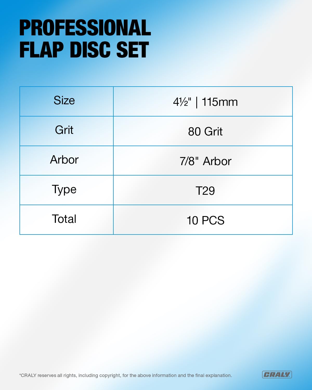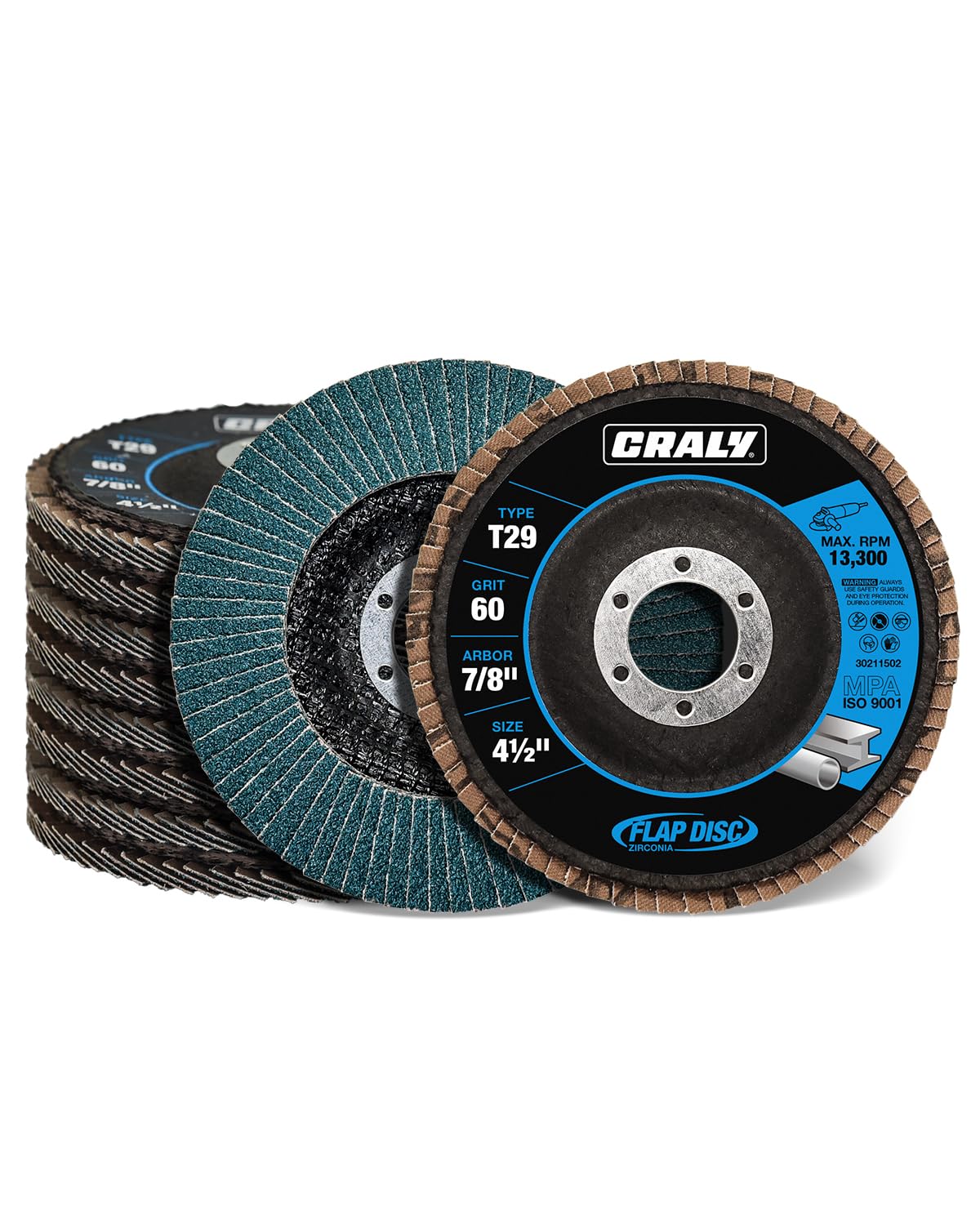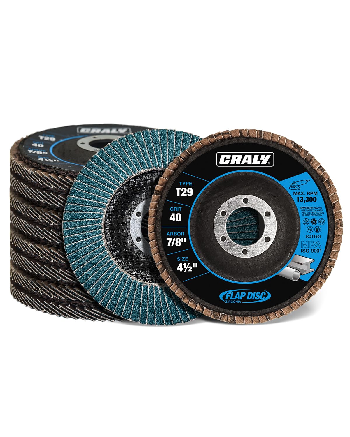 CRALY 4-1/2 Inch Flap Disc, 7/8 in Arbor, 80 Grit, Type 29 Premium Zirconia Sanding Disc for Angle Grinder, Hi-Performance Abrasive Grinding Wheel for Stainless Steel, Metal Sanding & Finishing, 10PC