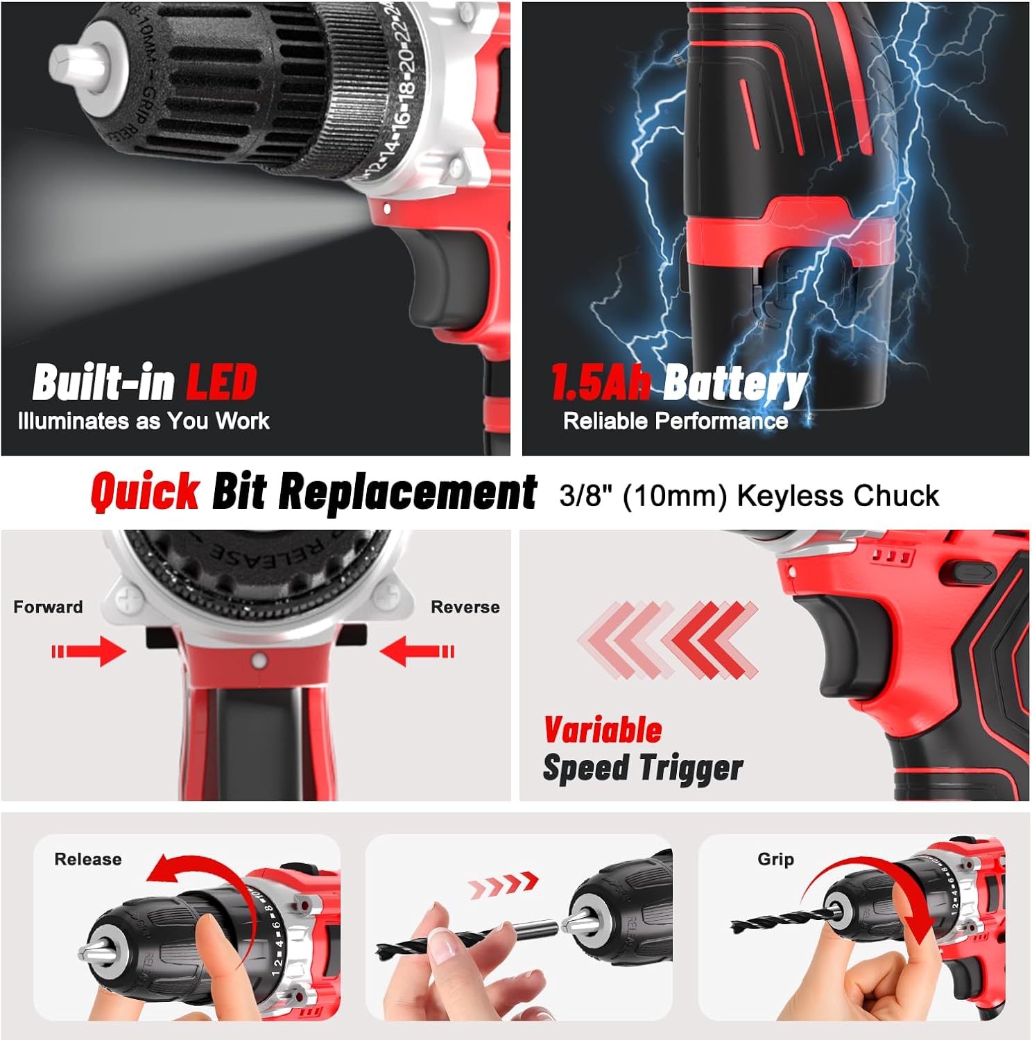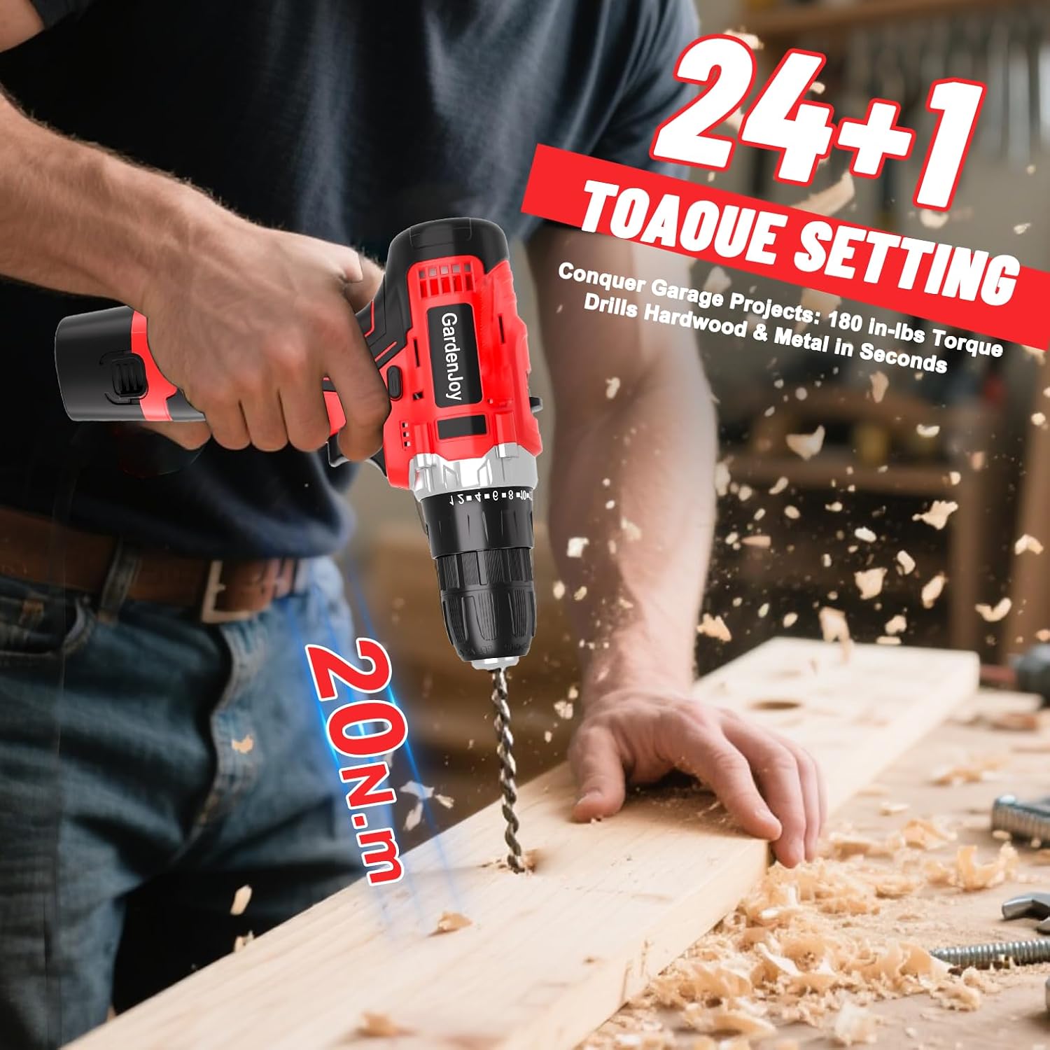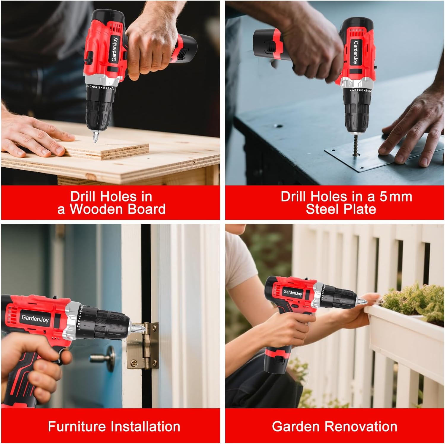 GardenJoy 12v cordless drill driver kit with 30pcs practical accessories. Perfect for tasks around the home, garden, garage, DIY and workshop, including drilling into wood, metal, drywall, plastics and all screw driving tasks, it can be your excellent helper for your various home projects.