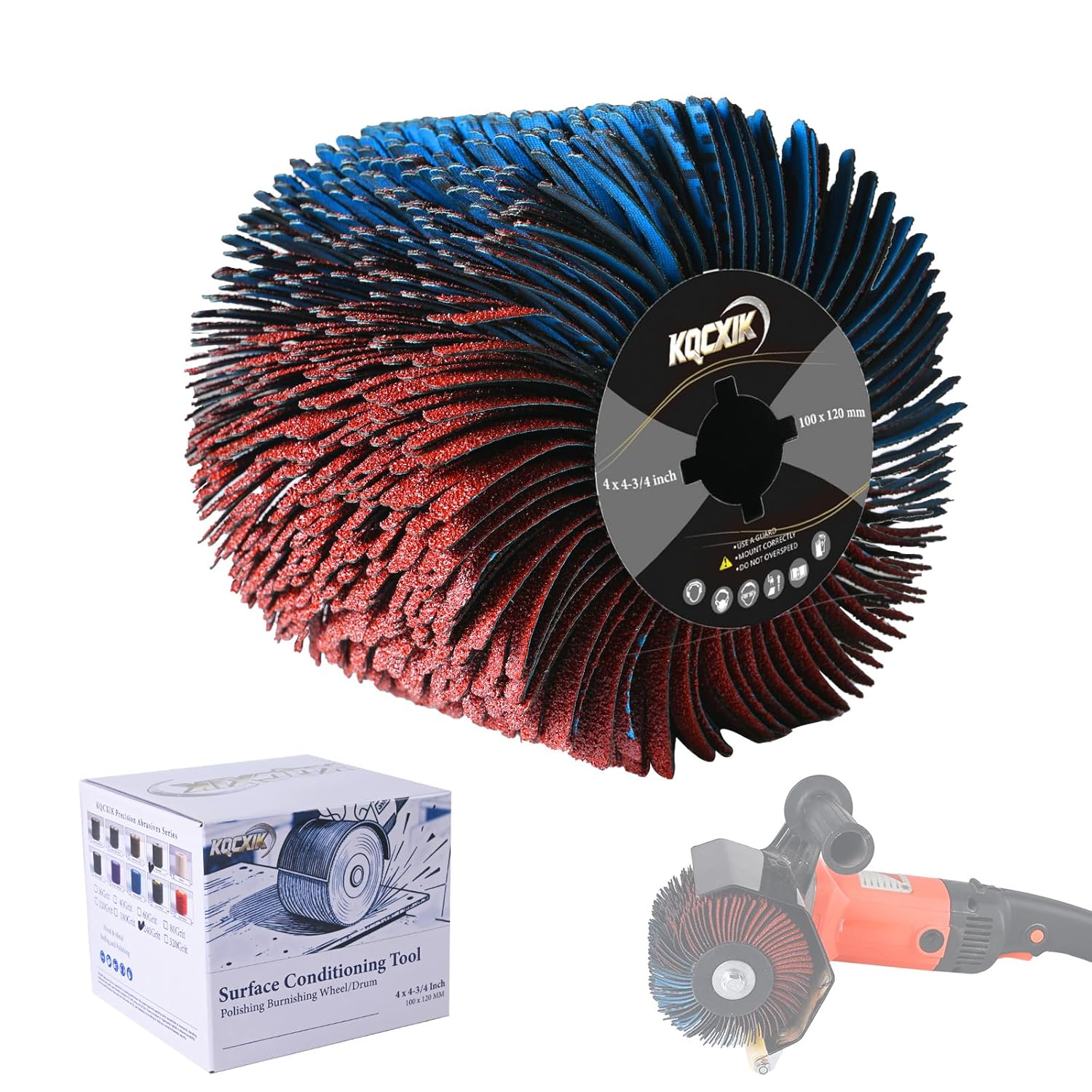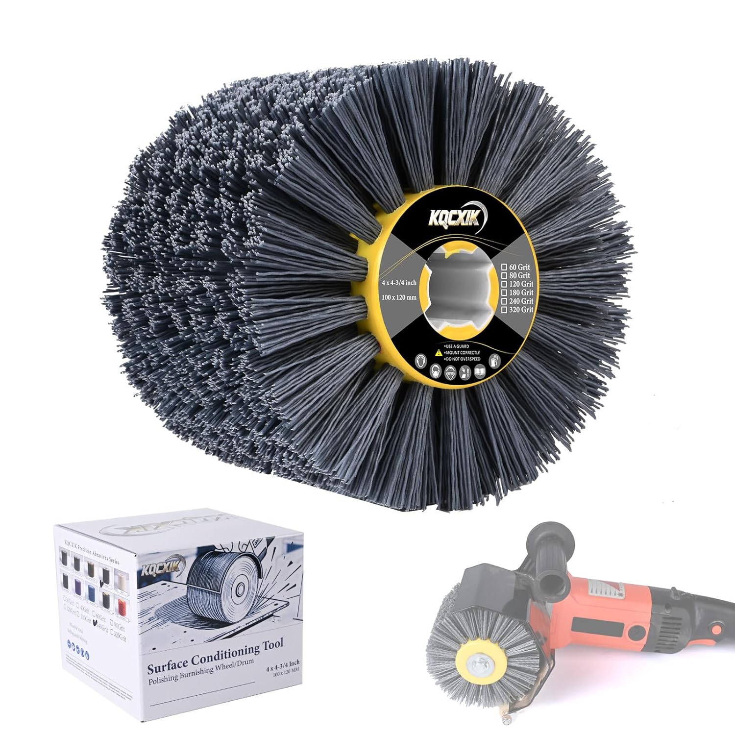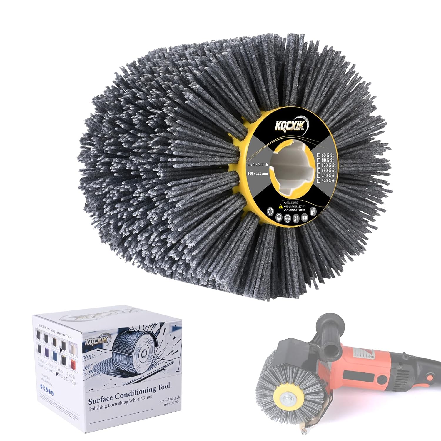 KQCXIK 4.7″ x 4″ Surface Conditioning Tool, 120 Grit Nylon Abrasive Drawing Wheel for Polishing Machines, Burnishing Drum for Wood Metal, Paint Stain and Rust Removal