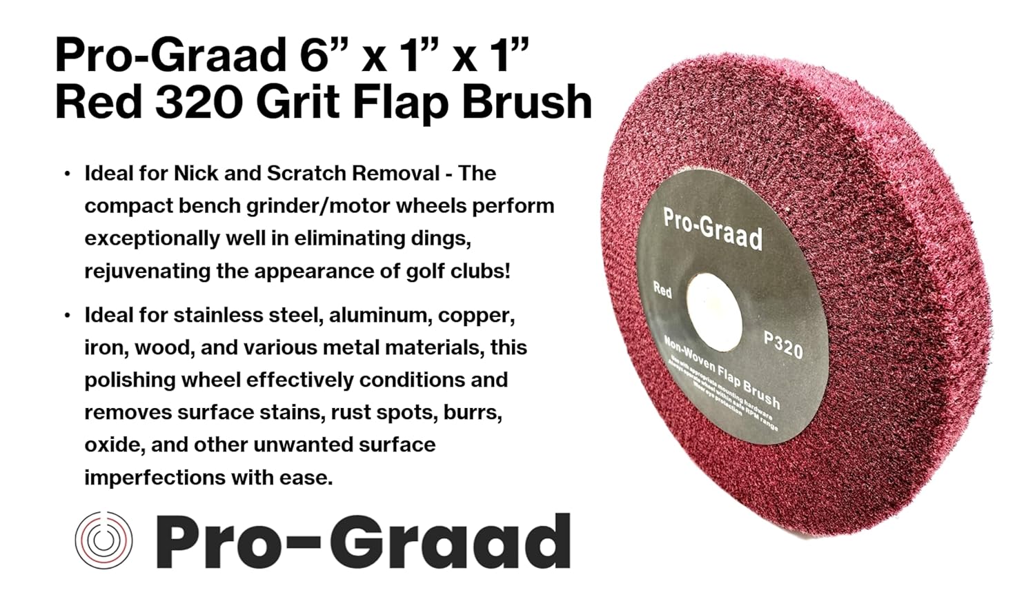 Pro-Graad 6u201D x 1u201D x 1u201D Arbor Red Bench Grinder Polishing Wheel, 320 Grit, Tight Weave, Great for refurbishing Golf Clubs and Metal, Non-Woven Wheel for Copper, Metal, Finishing, and Burnishing