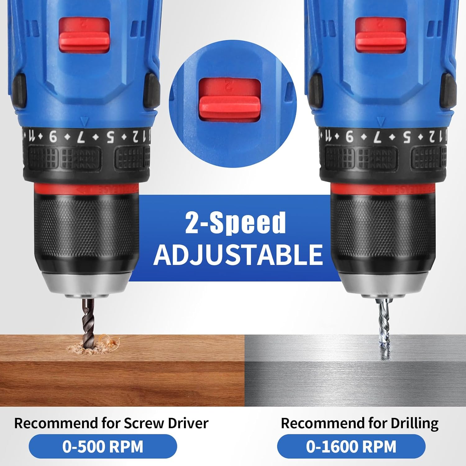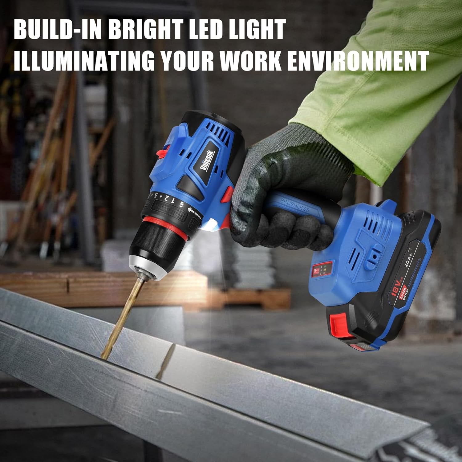 Vniissok Cordless Drill Set,18V Brushless Power impach driver with Battery and Charger, 3/8″ Keyless Chuck, Variable Speed, Drill Driver Bits Kit for Drilling and Tightening/Loosening Screws