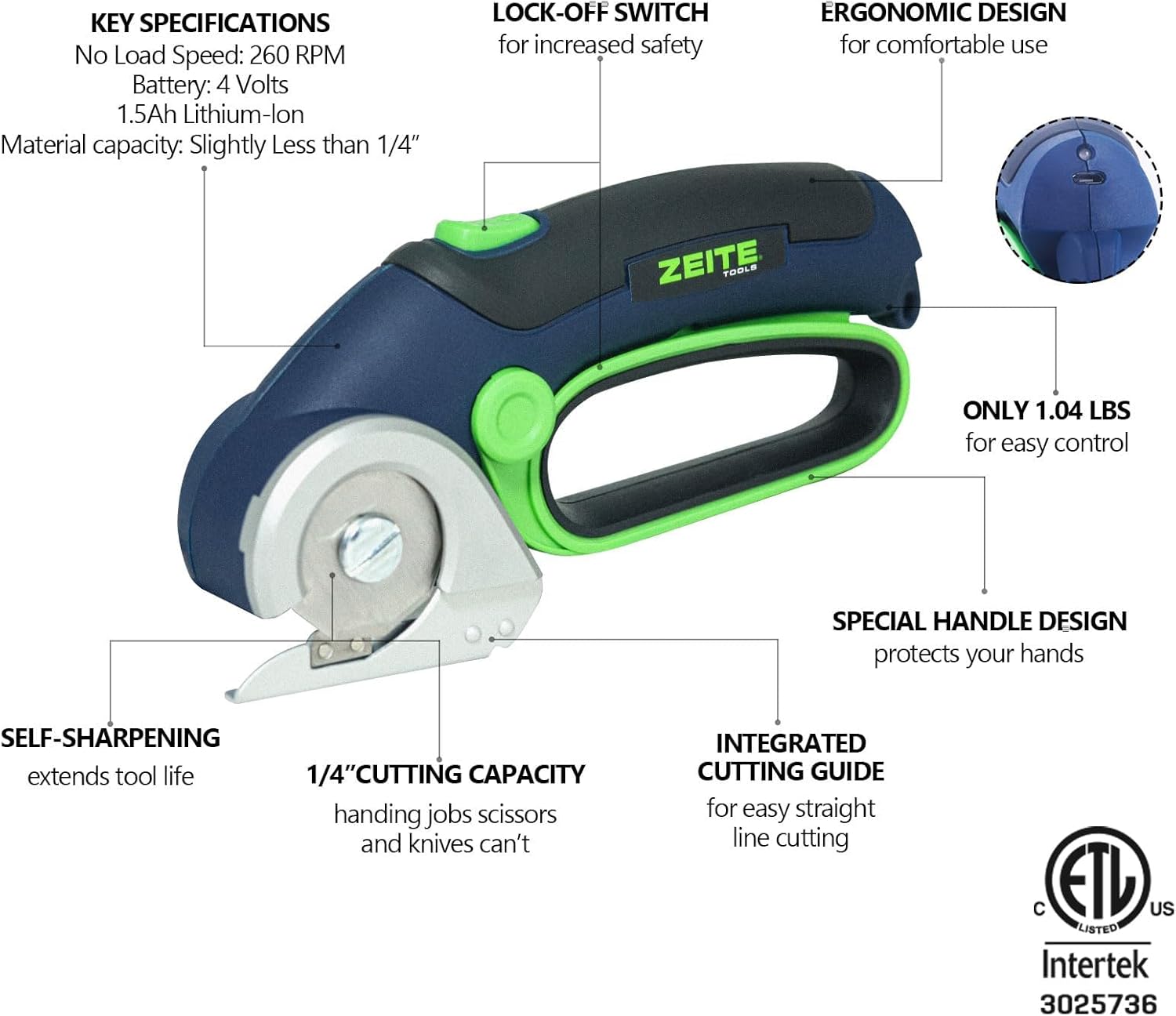 ZEITE 4V Cordless Electric Scissors,Cardboard Cutter with 2 Blades,Storage Box,USB Charging Cable,Power Rotary Cutter,Max Cutting 1/4″,for Cardboard Box,Thin Carpet & Plastic, Easy to Hold and Safe